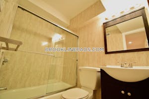 Bright and spacious 3 bed, 2 bath top-floor condo with private roof deck overlooking a tree-lined street. Renovated with high ceilings, period moldings, newly refinished floors, recessed dimmable lighting, and a modern kitchen. The primary suite includes an en-suite bath and a fabulous walk-in closet that doubles as a home office with custom shelving, adding to the home's ample storage. Smart upgrades feature new AC with WiFi controls, WiFi-enabled lighting, smart locks, and in-unit laundry. Additional deeded basement and common storage plus a shared backyard. Ideally located near Brookline Village and Brookline Hills T stops, bus routes at the end of the street, the newly renovated Margaret Robinson Park, and just five minutes to Longwood Medical.